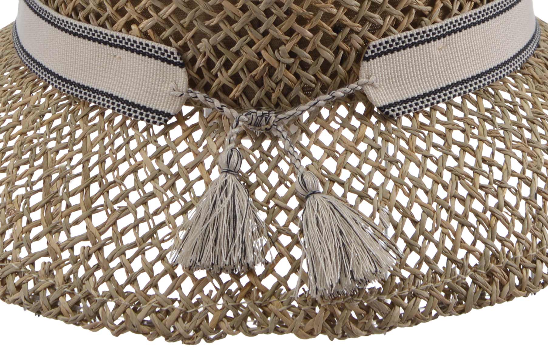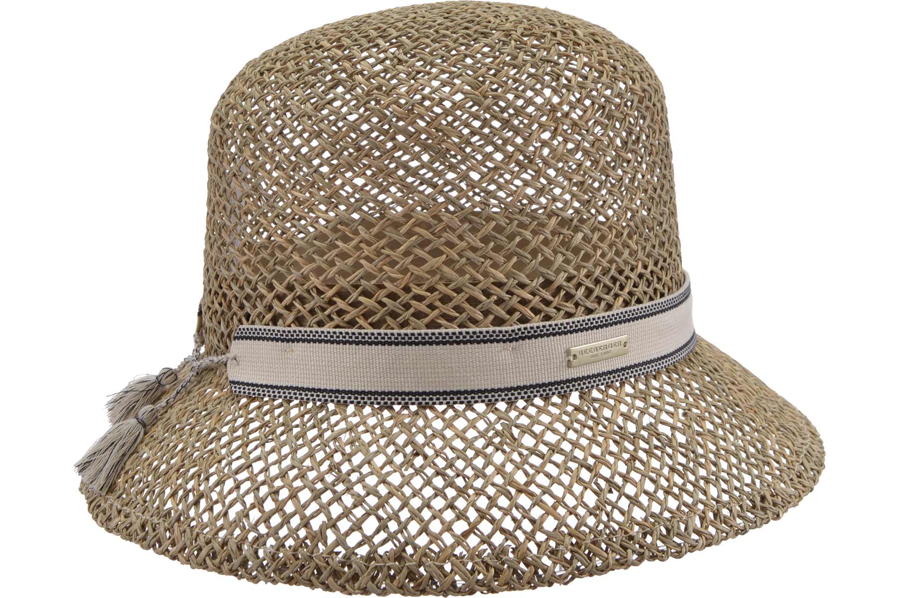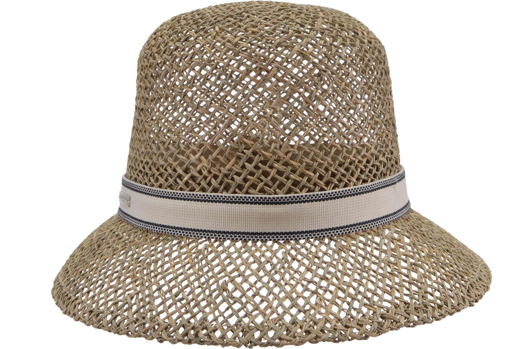 SEEBERGER Damen Stroh Hut Seegras Fischerhut mit besonderem Band 55722-1