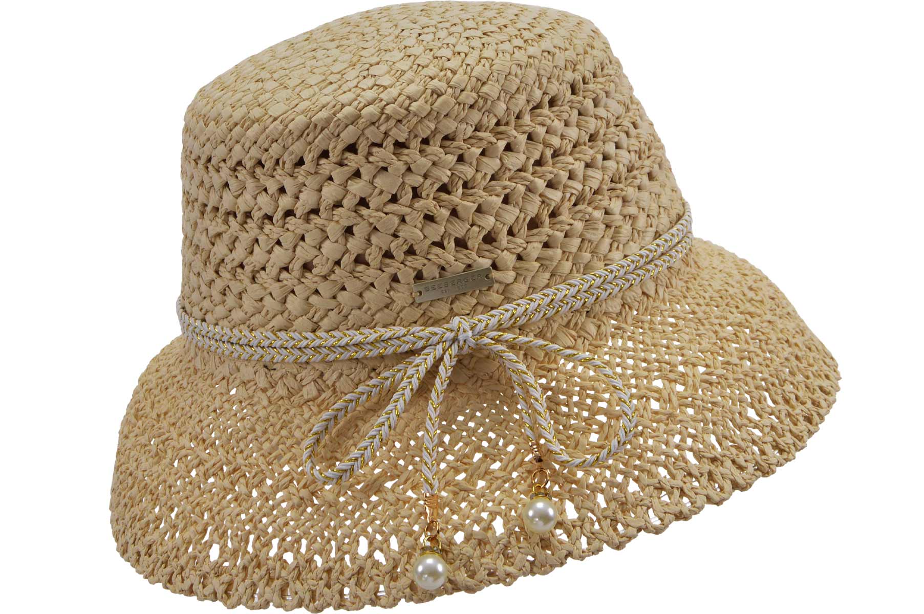 SEEBERGER Damen Stroh Hut Papierstroh Fischerhut mit Kettendetail 55695-1