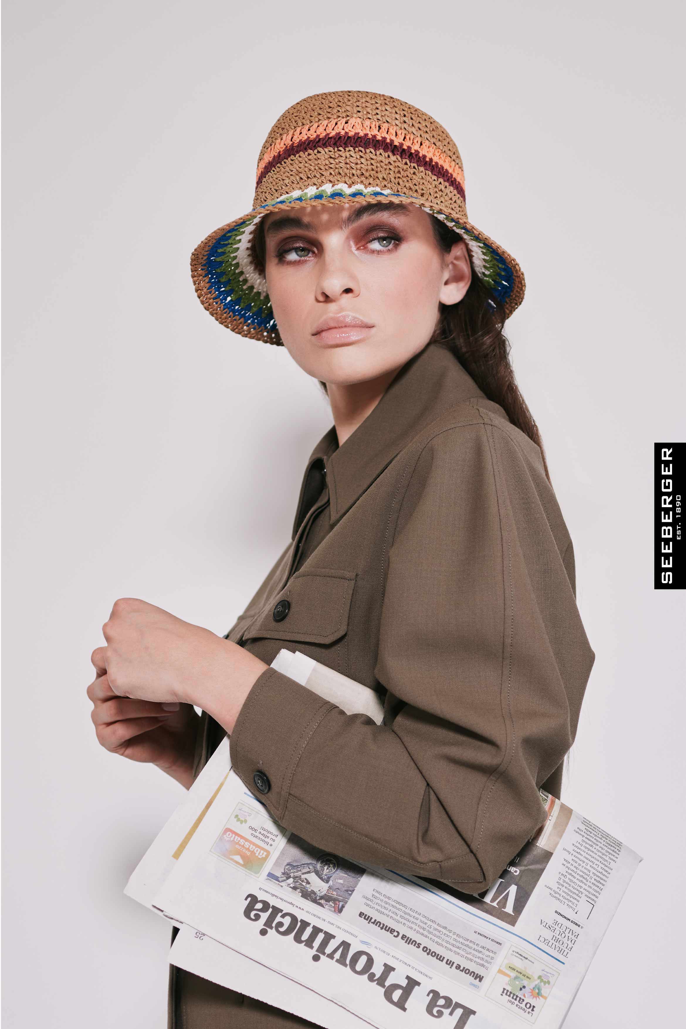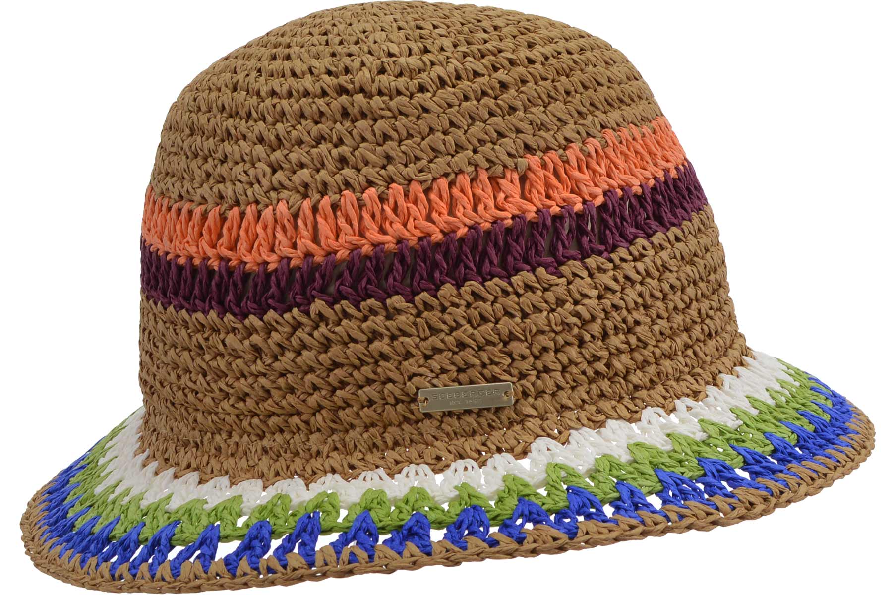 SEEBERGER Damen Stroh Hut Papierstroh Häkelglocke sechsfarbig 55520-0