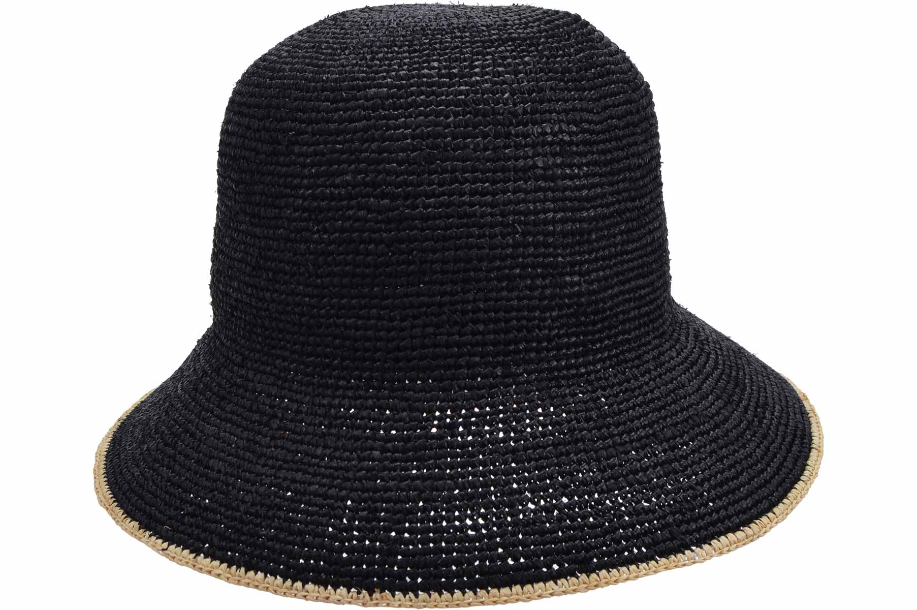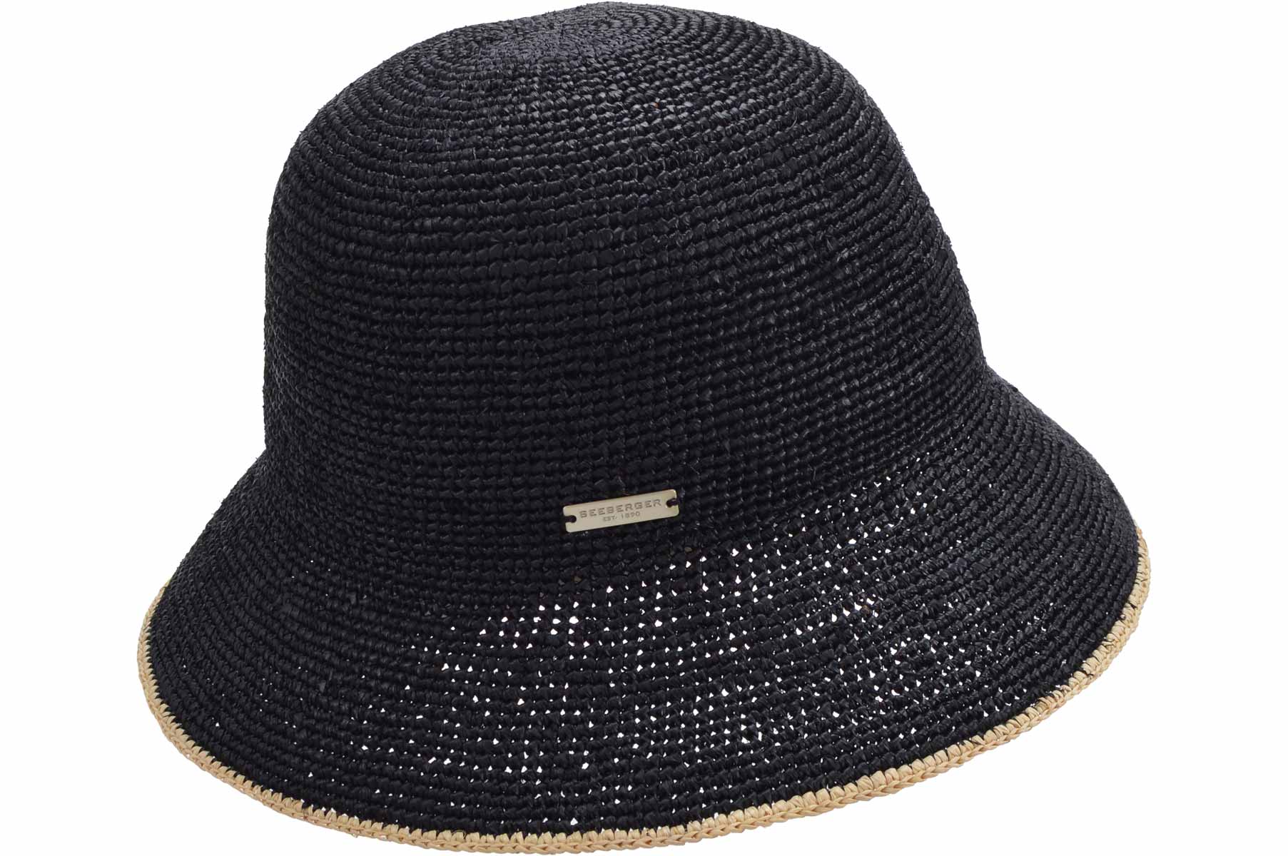SEEBERGER Damen Stroh Hut Raffiastroh Glocke 55350-0 schwarz/leinen Orig