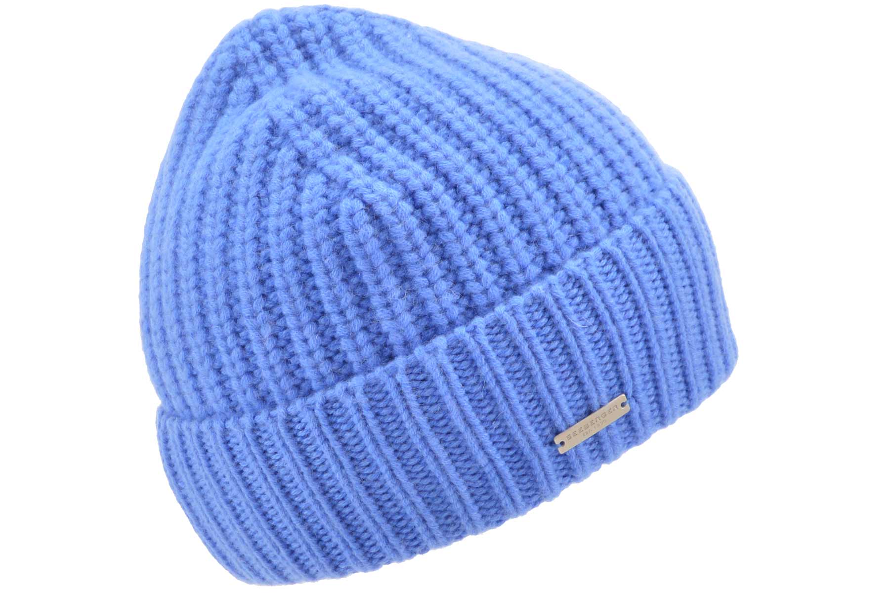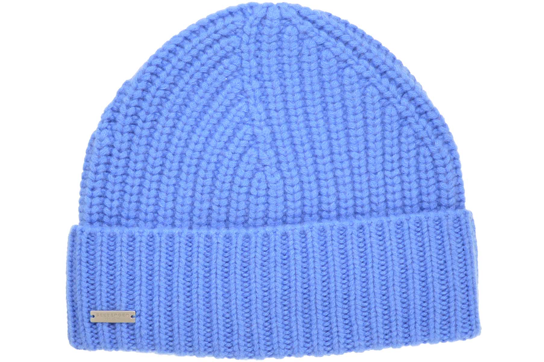 SEEBERGER Damen Strick Mütze Cashmere Aufschlagmütze grob gestrickt 19012-0 stahl Orig in Cashmere
