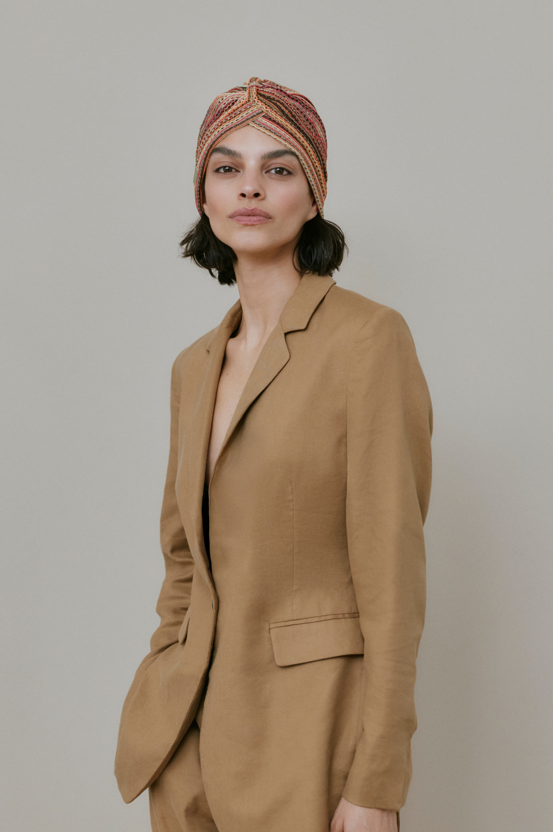 Durch geschickt platzierte Biesen schmiegt sich dieser Turban von Seeberger aus modernem Strickstoff perfekt an den Kopf. Er trägt sich dank des leichten Materials angenehm auf dem Kopf und das bunte Streifenmuster verleiht ihm einen sportiven Charme.