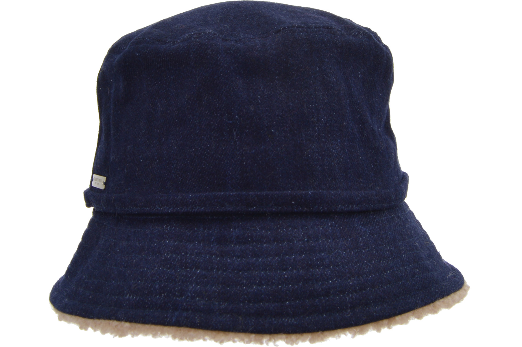 SEEBERGER women cut and sewn hat denim fabric bucket hat with fake fur detail 19756-0