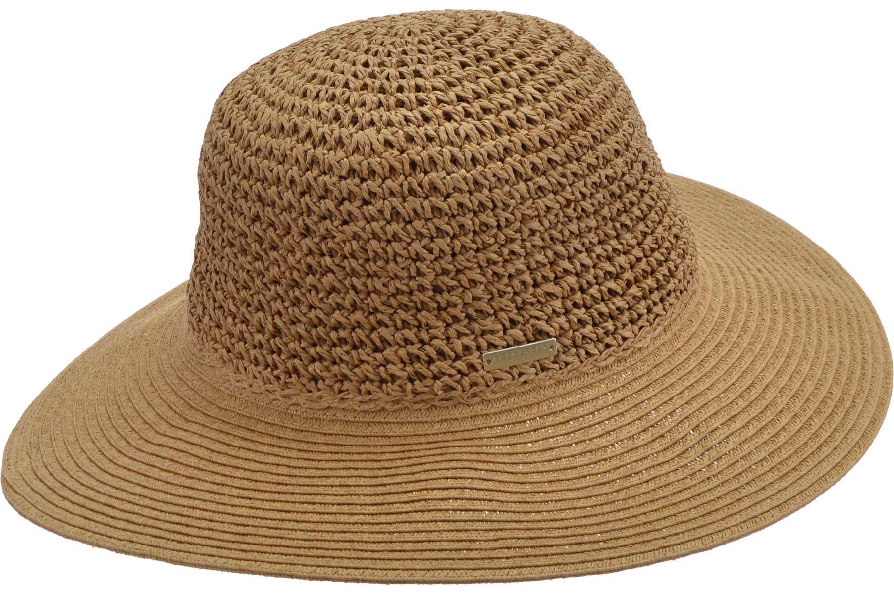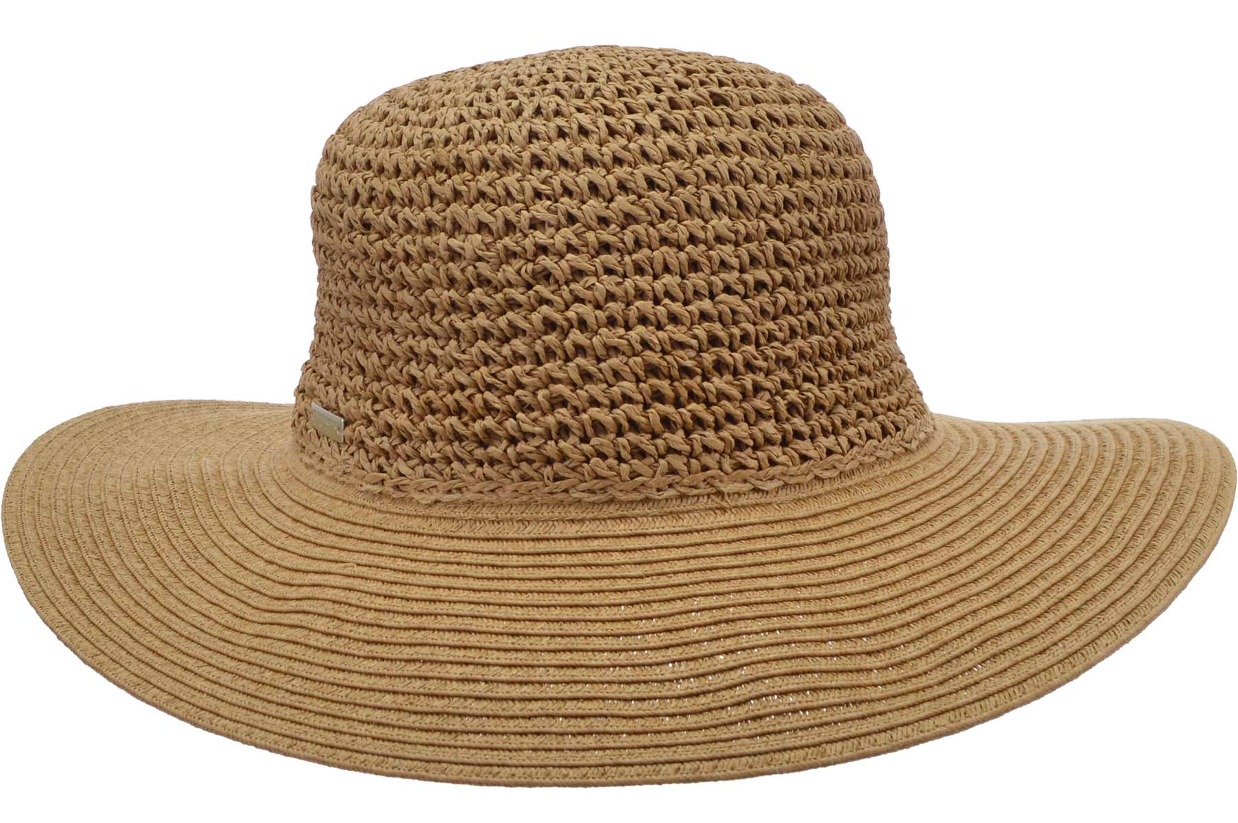 SEEBERGER women straw hat paper floppy in braid and crochet mix 55780-0 nut brown Orig